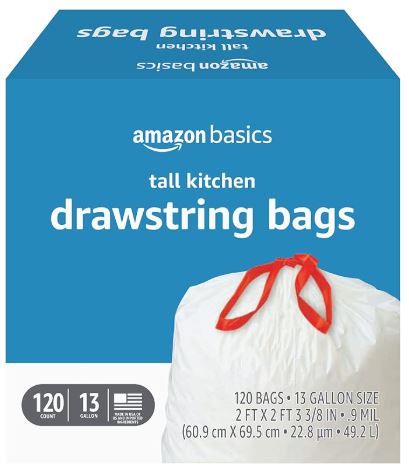 Amazon Basics Tall Kitchen Drawstring Trash Bags, 13 Gallon, 120 Count, Pack of 1 $14.24 (reg. $18.61)