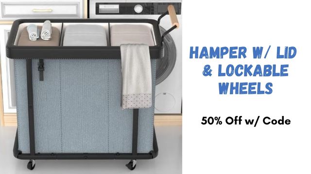 Get organized with this Amazon deal! Right now, use this code to get 50% off this 3-section laundry hamper with lid.