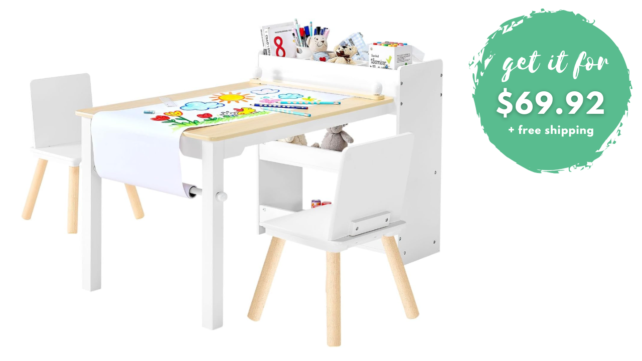 Right now at Amazon, stack two coupons to get a nice deal on a kids’ art table! Score one for just $69.92 shipped – regularly $109.99!