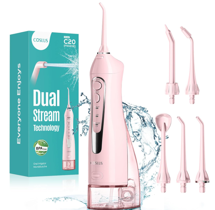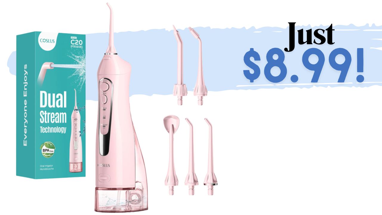 Right now at Amazon, use this coupon code to get a COSLUS Water Flosser for just $8.99 – regularly $36.99! This deal is available in pink.