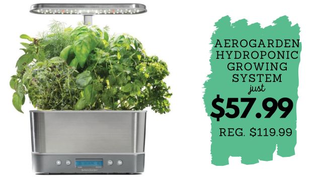 AeroGarden Harvest Elite Hydroponic Indoor Garden System + Seed Pod Kit, stainless steel – $57.99 (reg $119.99)