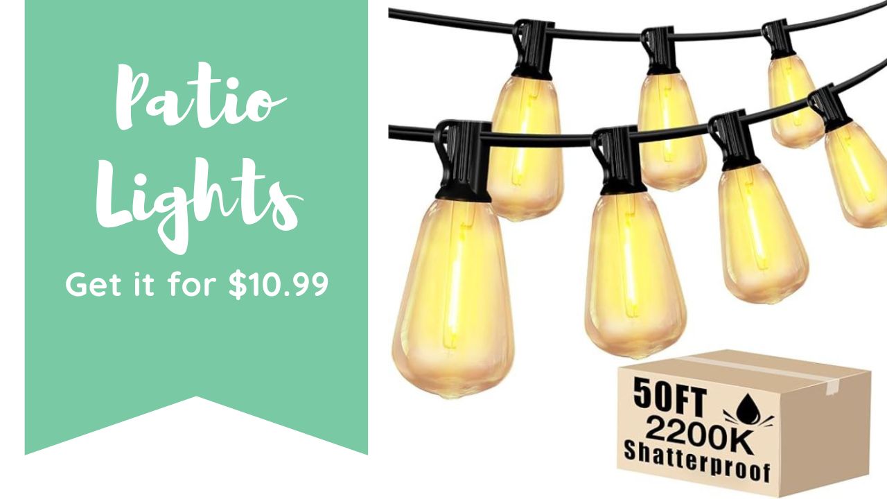 Right now at Amazon, score 50% off a 50ft set of outdoor patio bulb string lights! Get them for just $10.99 – regularly $19.99!