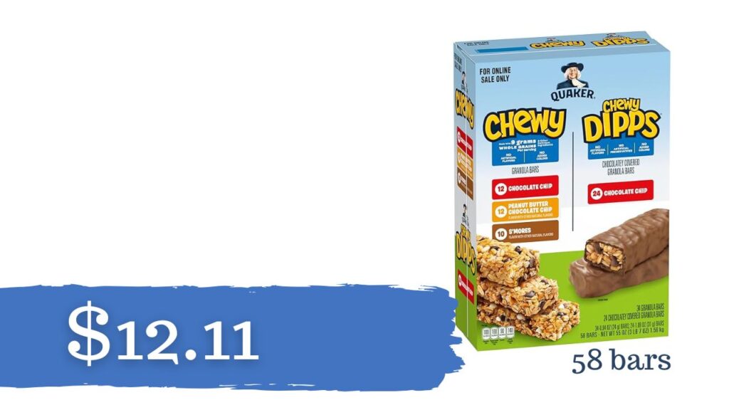 Here is another easy grocery offer from Amazon. Get a 58-ct Box of Quaker Chewy & Dipps Granola Bars for just $12.11 shipped!