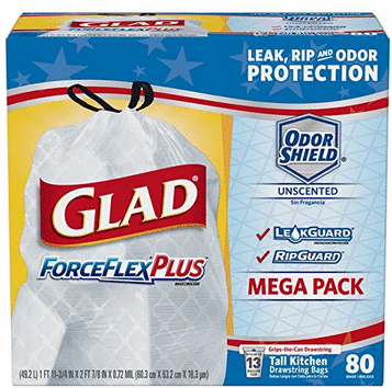 Glad ForceFlexPlus Trash Bags, 13 Gallon 80 Count $12.34