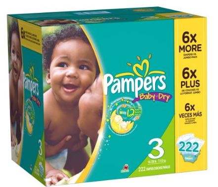 Pampers Baby Dry Diapers, size 3, 222 ct. $47.19