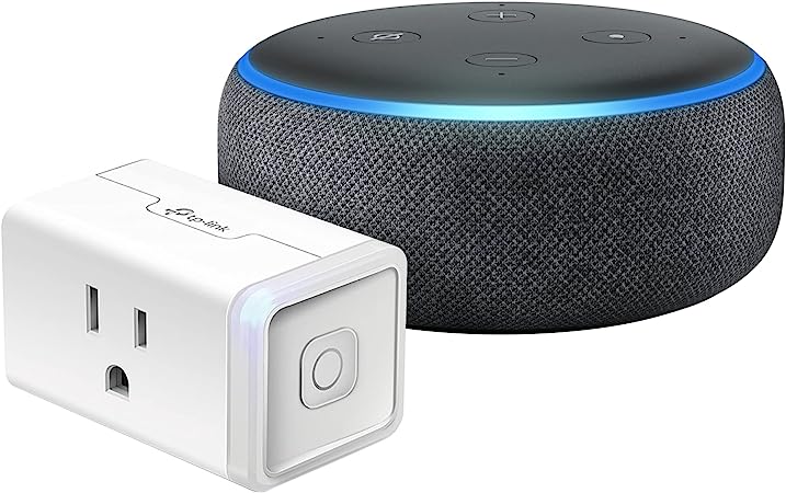 This Echo Dot bundle includes a Kasa Smart Plug to allow hands-free control of electronics from anywhere with the Kasa app.