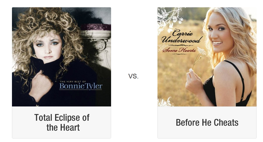 You can get a credit to purchase Carrie Underwood’s “Before He Cheats” or Bonnie Tyler’s “Total Eclipse of the Heart” for FREE! Vote for which is your favorite to get the Amazon MP3 credit!