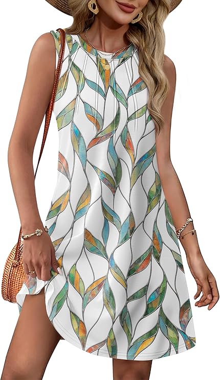 Loose Crew Neck Sleeveless Sundresses with Pockets $14.99