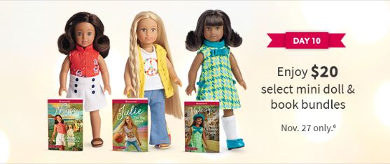 Here’s a fun deal for American Girl fans. Today only, head to American Girl to score mini doll and book bundles for only $20! They’re normally $68.99!