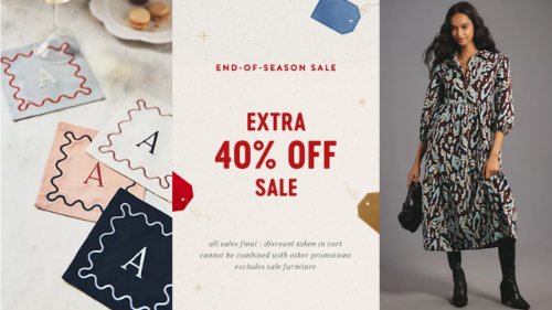 Discount is applied automatically at checkout. All sales are final. Deal excludes furniture and cannot be combined with other offers. Shipping is FREE on orders $50+ for AnthroPerks members.