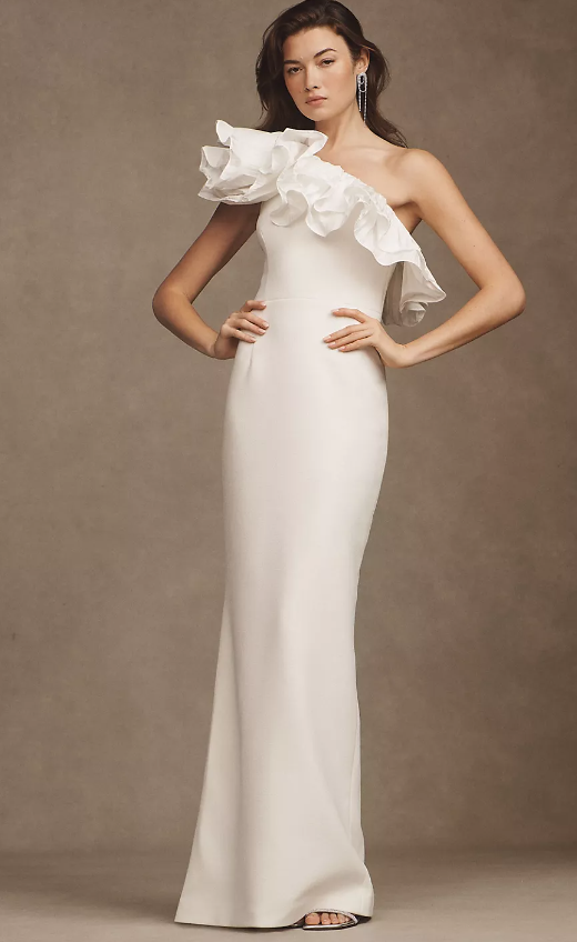 Rebecca Vallance Chloe Taffeta One-Shoulder Crepe Column Gown – $800 (reg. $1,125)