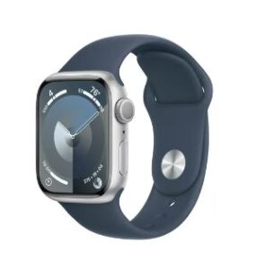 Apple Watch Series 9 GPS 41mm Silver Aluminum Case with Storm Blue Sport Band – S/M – $349.99 (reg. $399.99)