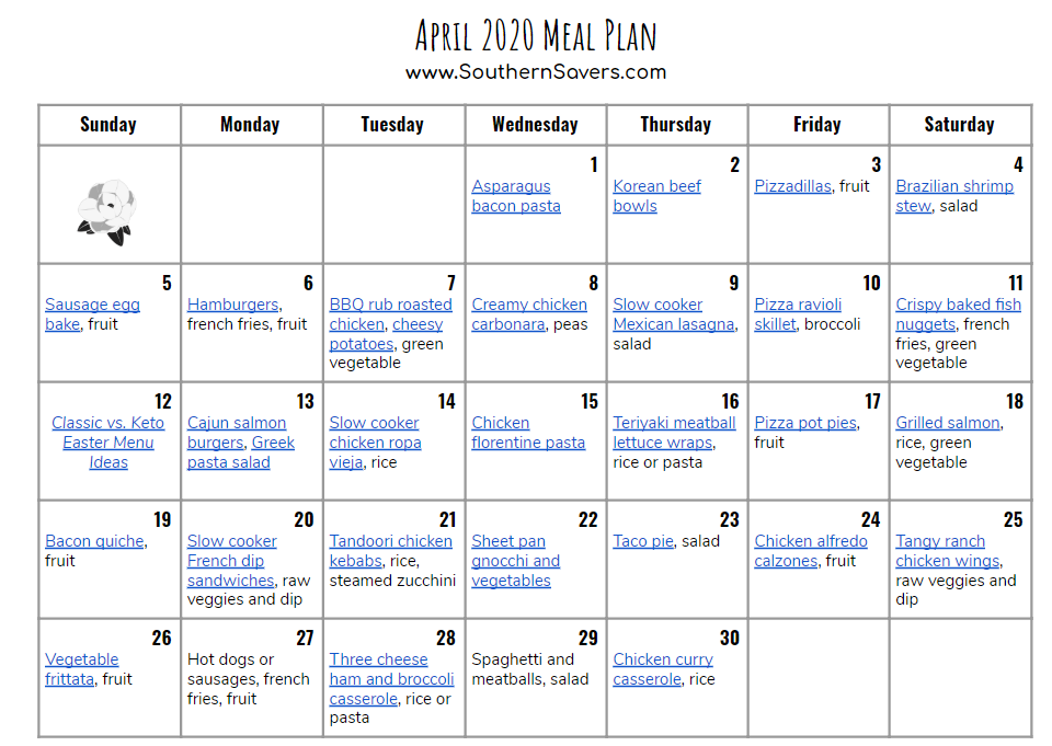 Home > Menu Plans > April 2020 Monthly Meal Plan
