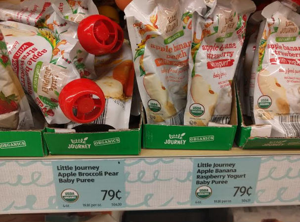 Little Journey Pouches – Pouches can be great on the go! Aldi offers theirs for 79¢ and a bonus is that they are Organic. They are have apple in them along with other flavors so give them a try. This is probably the lowest price you will find Organic pouches without couponing, excluding Clearance and Closeout deals.