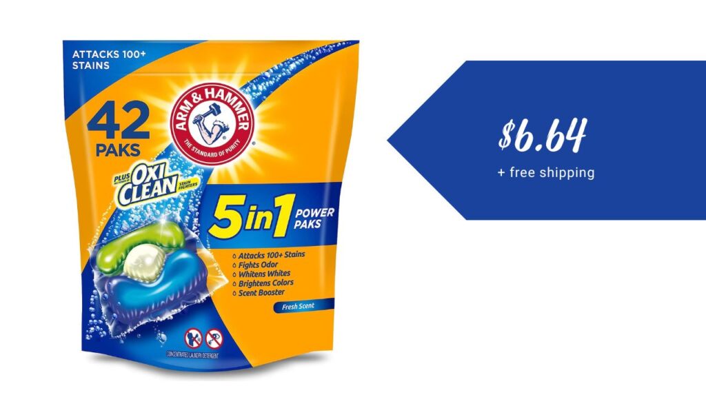 Get a sweet deal on a 42-count bag of Arm & Hammer Plus OxiClean 5-in-1 Laundry Detergent Power Pacs at Amazon. Pay only $6.64 with a Subscribe & Save!