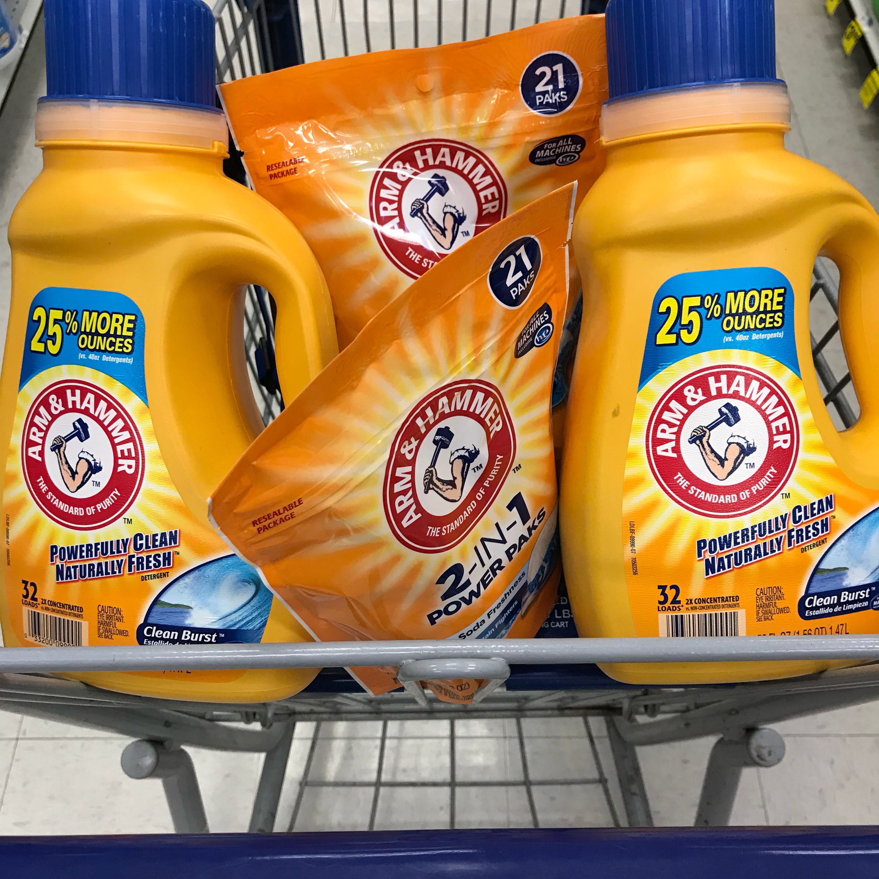 $5 BC WYB (4) Arm & Hammer Laundry Detergent, Power Paks or In-Wash Booster, 43.75-50 oz, 21 ct. or 18 oz, $2.99, limit 2