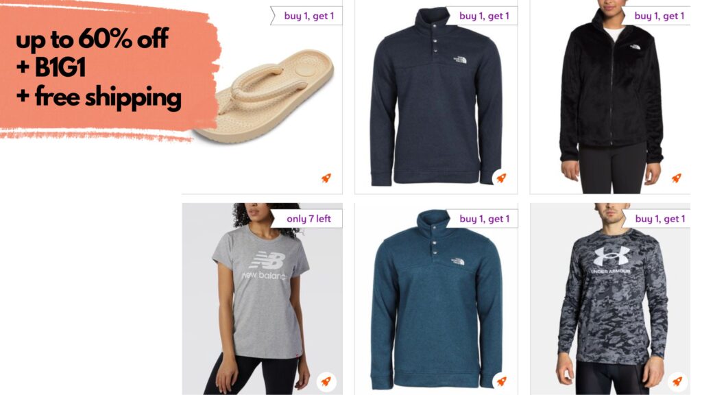 Mix and match to make your own deal this weekend on name brand apparel and shoes! Head over to Zulily and find tons on North Face, Under Armour, New Balance, Allbirds and more all on sale up to 50% off, plus buy 2+ items and get them B1G1 at checkout!!