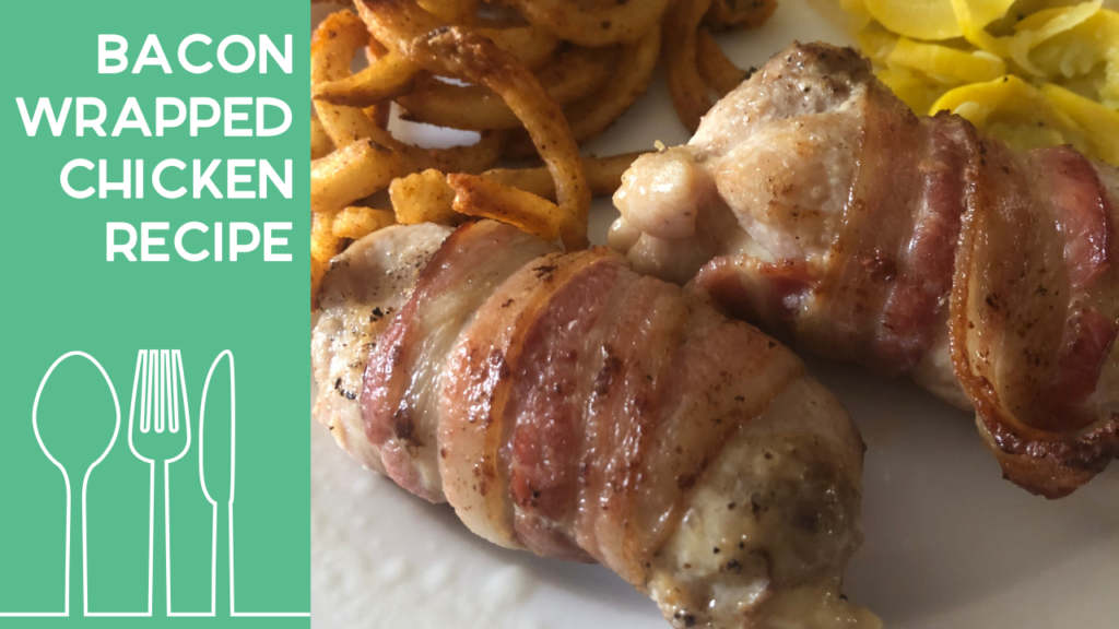 - While the skillet is heating, wrap each piece of chicken with a slice of bacon.