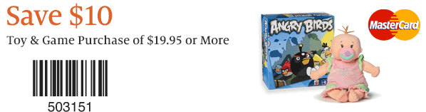Barnes & Noble has a great coupon for last minute shopping! Use this printable coupon to get $10 off a $20 toy purchase or enter the code L9V4X9V online.