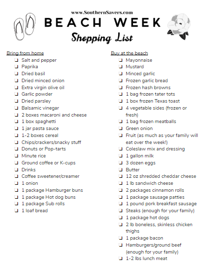 Download the Beach Week Shopping List!