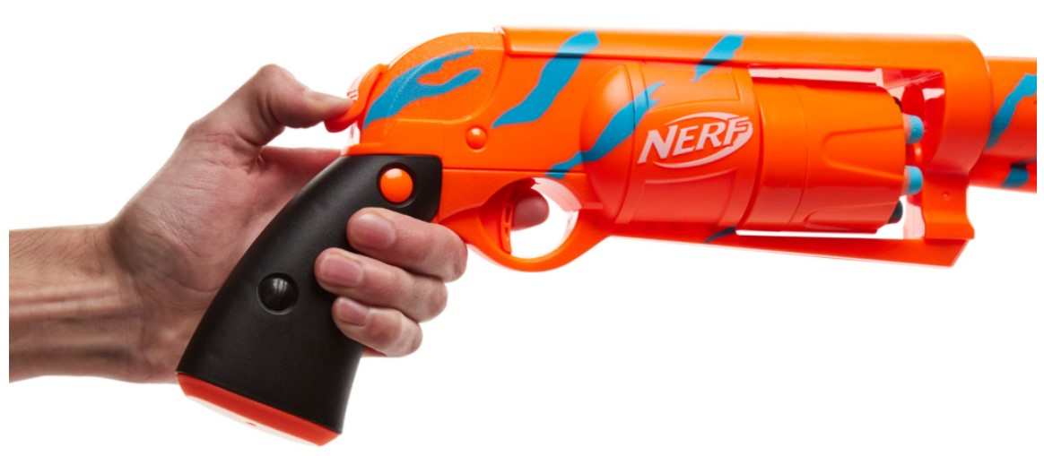 This Nerf Blaster comes with 6 darts to fill its rotating drum.