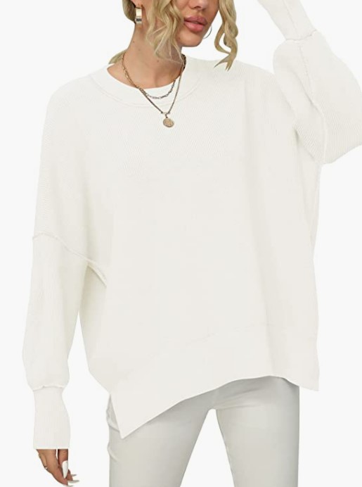 Oversized Side Slit Ribbed Knit Pullover Sweater – $44 (reg. $64)