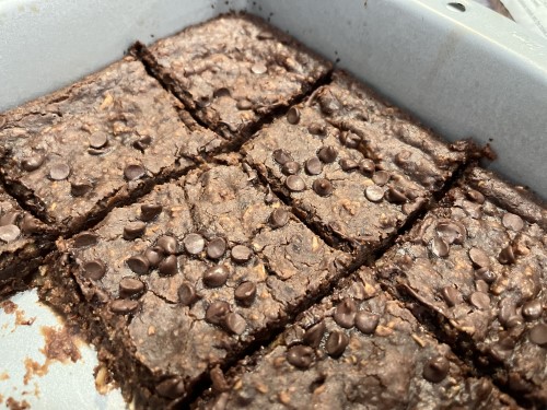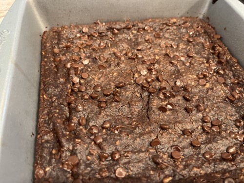 - Mix in 1/2 cup chocolate chips, then spread in a greased 8x8 pan. Optional: sprinkle more chocolate chips on top.