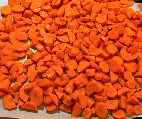 I preheated the oven first and peeled the carrots (my least favorite part).