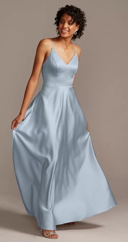Spaghetti Strap Satin A-Line Long Dress – $83.97 (reg. $119.95)