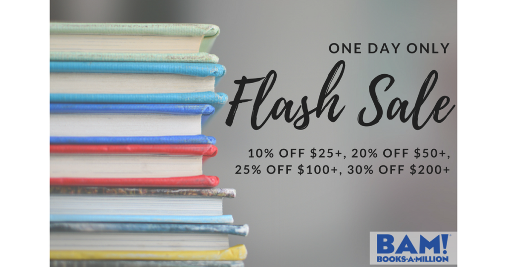 Today only, Books-A-Million is having an amazing flash sale!! They are offering 10% to 30% off your entire purchase for one day only!