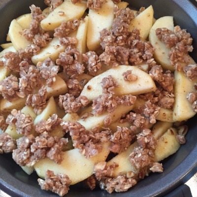 - Mix everything for the topping in a mixer. I mixed mine for 3 minutes until everything was sticking together.