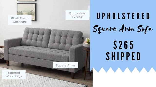 Right now, hurry to The Home Depot and score this Brookside Brynn Polyester Upholstered Square Arm Sofa for just $264.90 – regularly $533.80!