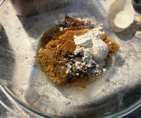 - Make the filling with the 1 cup brown sugar, 1 tbsp. cinnamon, 2 tbsp. flour and 3 tbsp melted butter.