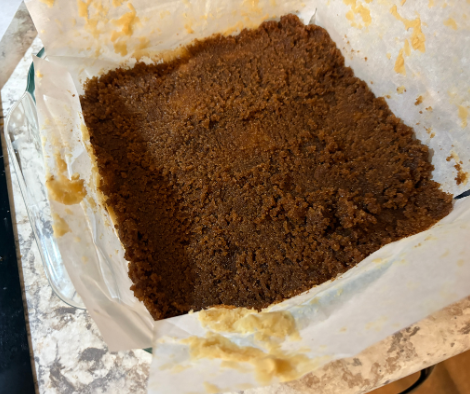 Cut two rectangle of parchment paper and criss cross them in a pan so that you can easily pull the bars out and so that the base will be perfectly square.