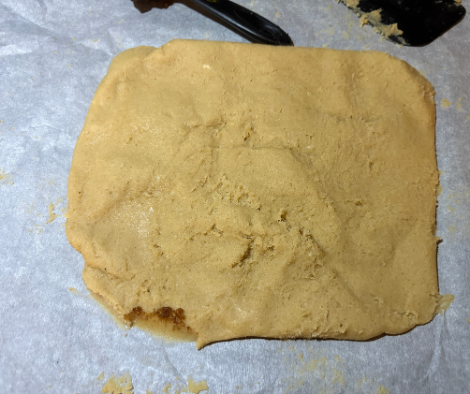 - Roll the other half of dough into a square by placing parchment paper on top of it (you may need to sprinkle some extra flour).