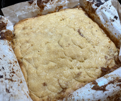 - Cut two panels of parchment paper to create a crisscross pattern in an 8x8 baking dish so you can easily pull the bars out when they're done.