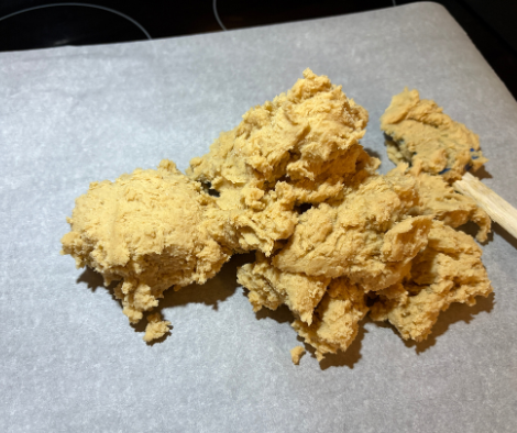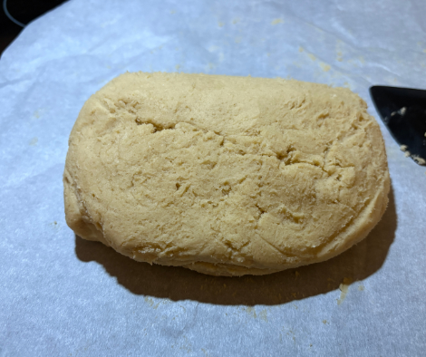 - Place the dough on parchment paper and roll into a ball, then divide in half.