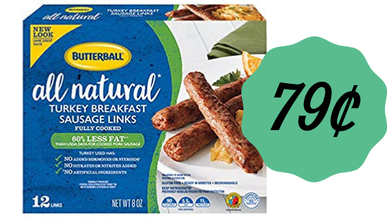 - Butterball Turkey Sausage, 8 oz, B1G1 at $3.59 ($1.79)