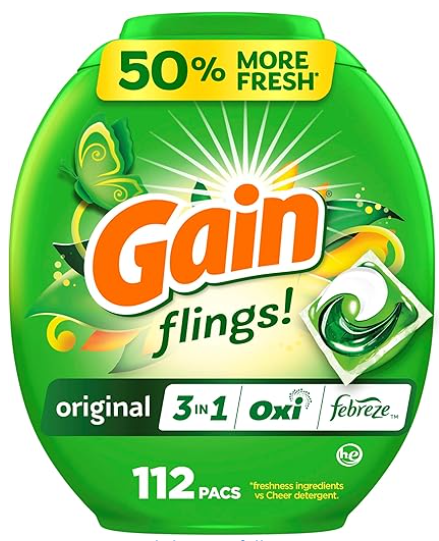 (1) Gain FLINGS Laundry Detergent Pacs, Original Scent Oxi Boost and Febreeze, 112 ct – $27.27