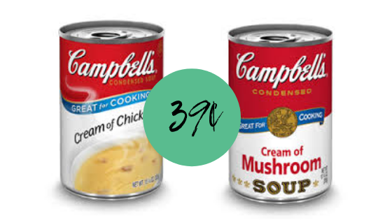 Stock up for the holidays! Campbell’s Cream Soup is on sale at Kroger for 49¢. Use a coupon from the paper and pick them up for just 39¢ each!