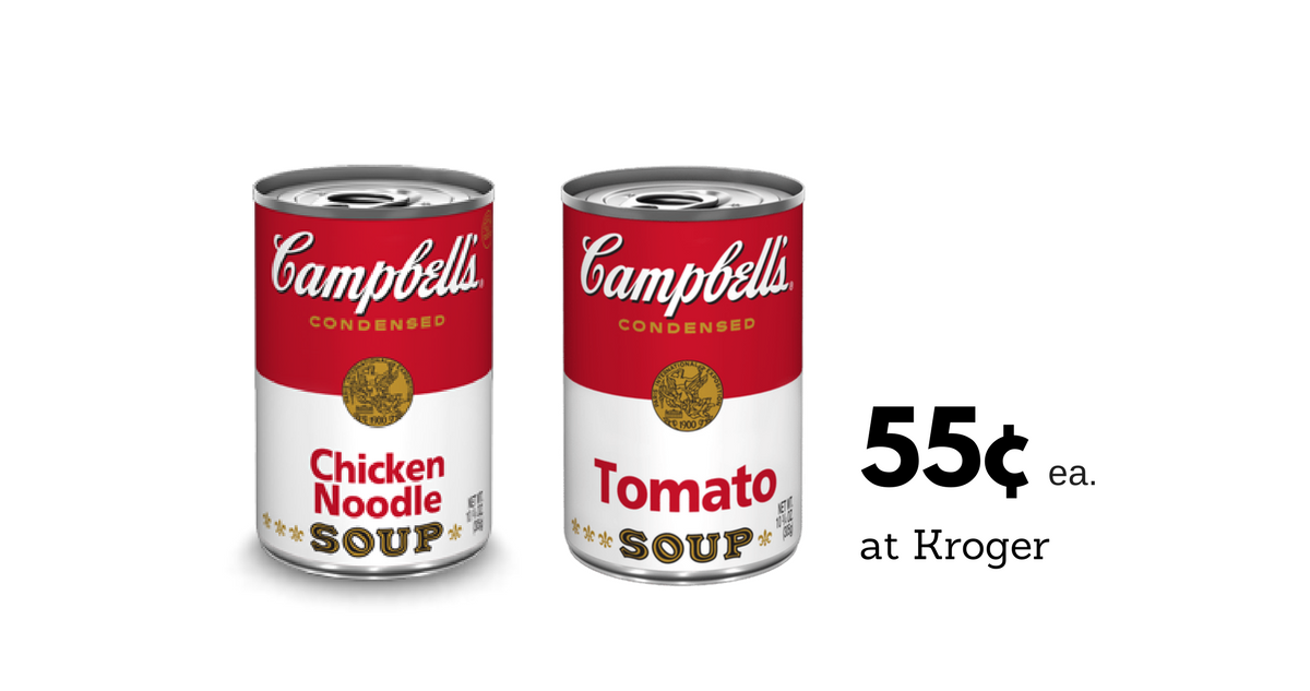 Kroger – Campbell’s Condensed Soup, 10.5-11.5 oz, $1.25