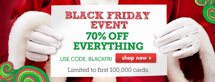 Knock out all of your holiday cards when you get 70% off plus free shipping! Use the coupon code BLACKFRI at checkout.