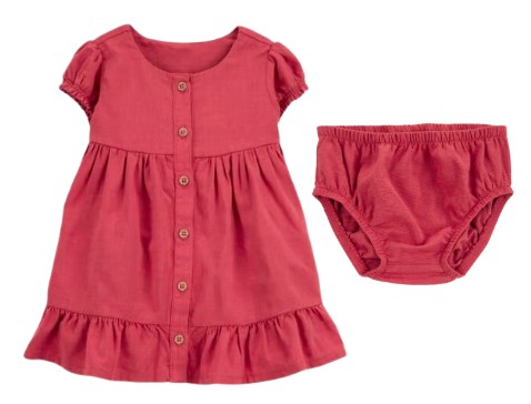 Baby Short-Sleeve Linen Look-Alike Tiered Dress – Red – $11.99 (reg. $32)