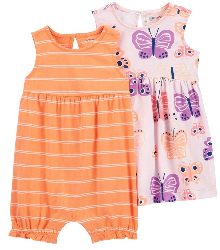 Orange Stripe Sleeveless Romper & Pink Butterfly A-Line Dress – $16.99 (reg. $34)