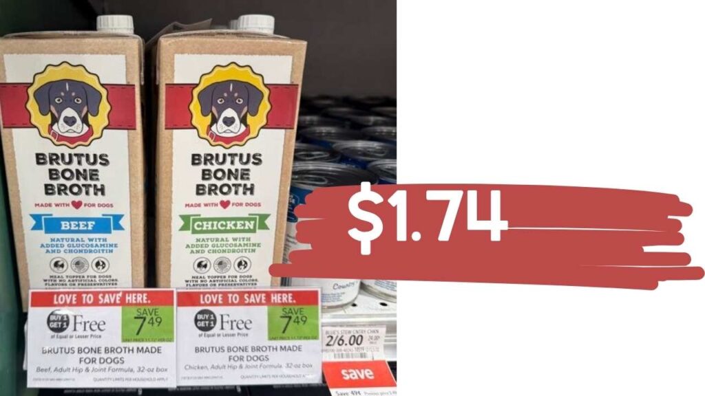 Heads up dog owners! Today and tomorrow you can pick up Brutus Bone Broth for a great price at Publix! Use an Ibotta rebate with this week’s B1G1 sale and score a carton for just $1.74.