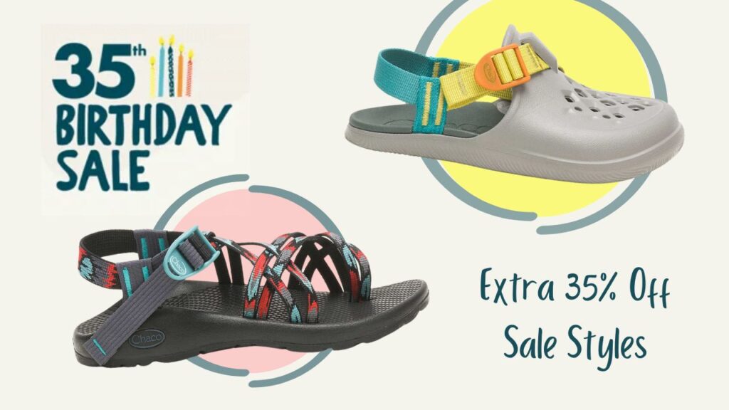 Chaco is celebrating their 35th birthday by offering an extra 35% off sale items! Grab sandals, slides, flip-flops and more for the family!
