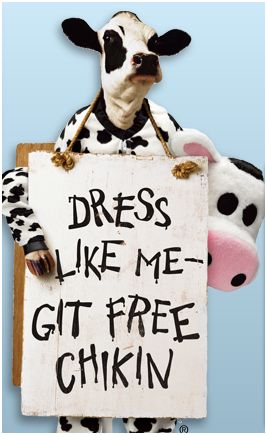 Round up your herd and don’t forget to wear your cow costumes. In honor of Cow Appreciation Day, anyone who comes to Chick-fil-A dressed from head to hoof as a cow will receive a FREE Combo Meal!