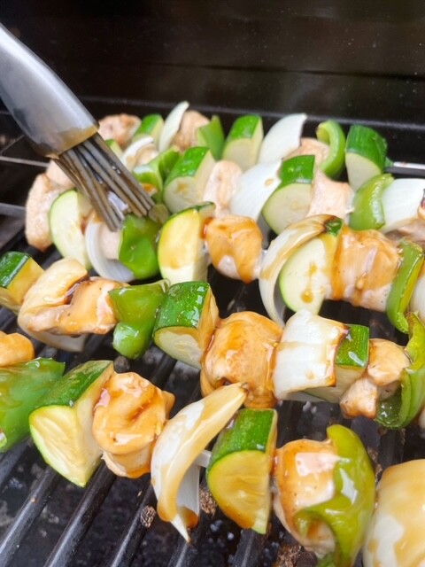 Note: This is the skewer rack I’m using in the photos! I like it because it helps to evenly cook the food and then I can transfer the skewers to direct heat to get a nice char.