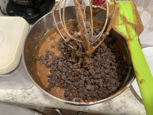 - Mix the dry ingredients in a separate bowl—flour, baking soda, baking powder, salt, and cocoa powder.