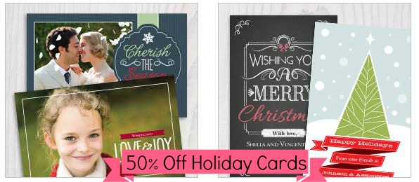 Use the code HOLIDAY2013 to get 50% off all photo cards. Cards are sold in sets of 10-12 and are 75¢ each after the coupon code. Shipping starts at $8, so after shipping is added in it will make each card cost $1.41.